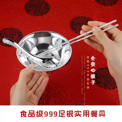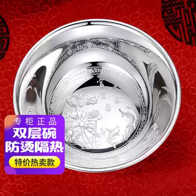 Suzhou silver building double insulation bowl pine crane Dragon Dragon Phoenix Silver Bowl set 999 foot silver tableware birthday wedding