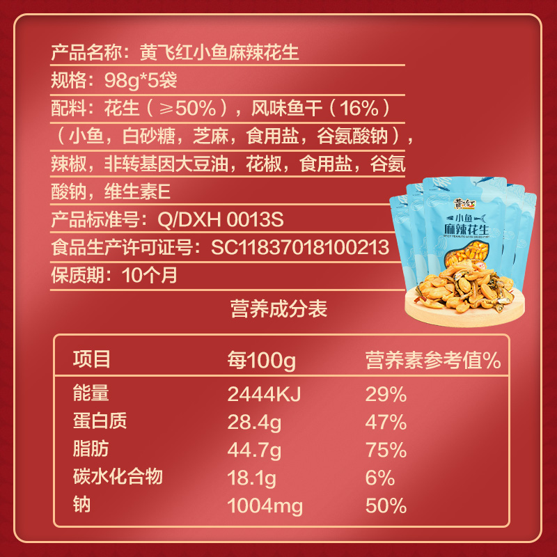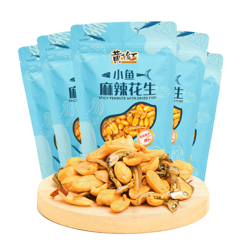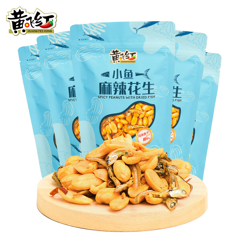 Yellow Flying Red Spicy Little Fish Dried Peanuts 98g * 5 Bags Sea Taste Small Fish snacks Yellow Fly Nuts Down the Wine Dish