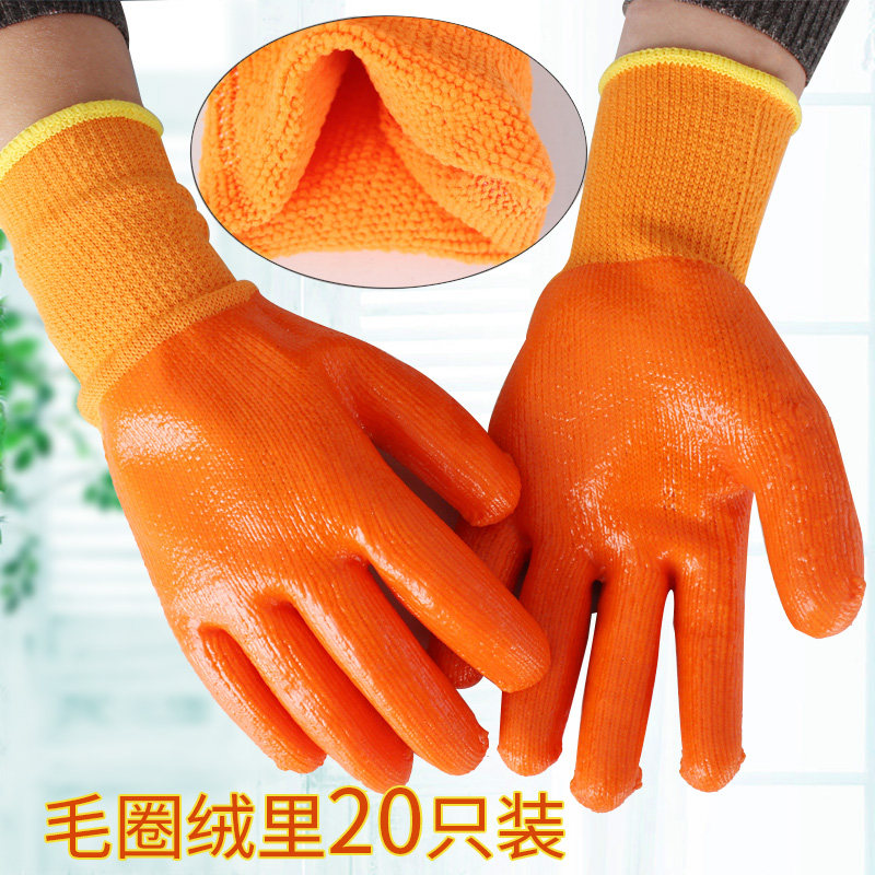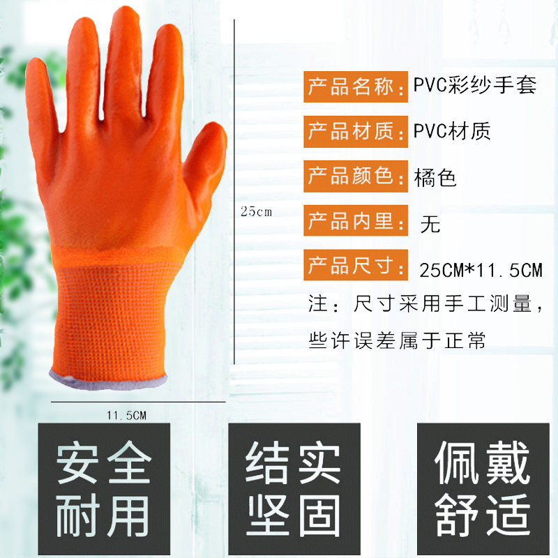 Jiedun PVC hanging rubber gloves Site waterproof non-slip pure rubber wear-resistant thickened dip glue coated work labor insurance gloves