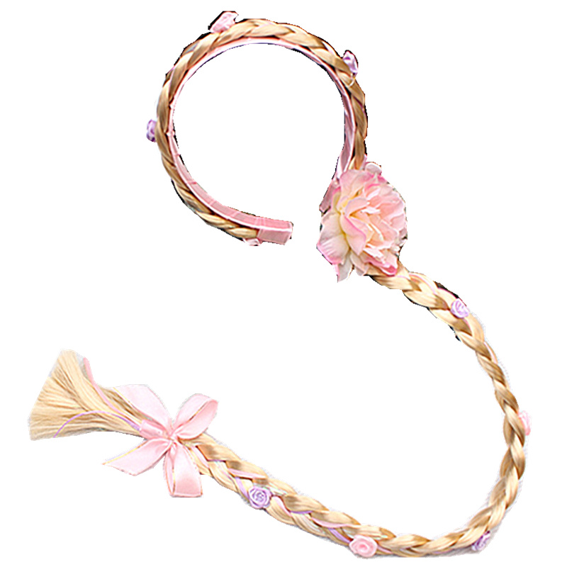 Long Hair Princess Wig Braid Pink Rose Blossom Hair Stirrup Butterfly Knot Coarse Braid Performance Clothing Accessories Children Hair Accessories