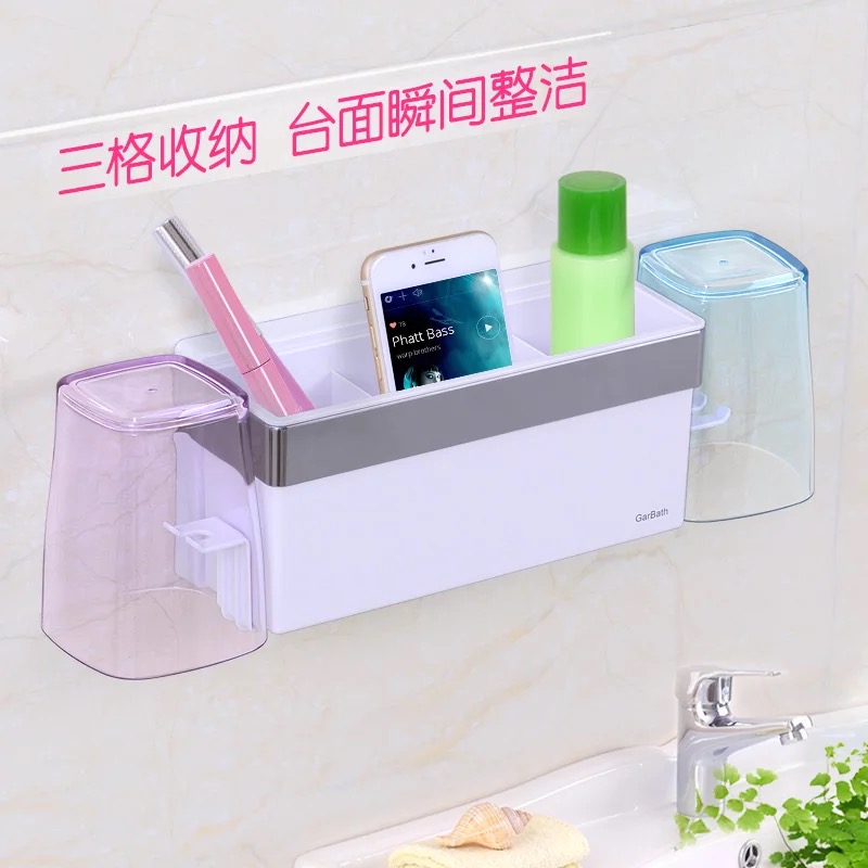 Carabao Toothbrush Shelf Suction wall Cosmetic Room Toothpaste Tooth holder Perforated Toothbrushing Cup Holder Gargling Cup Suit