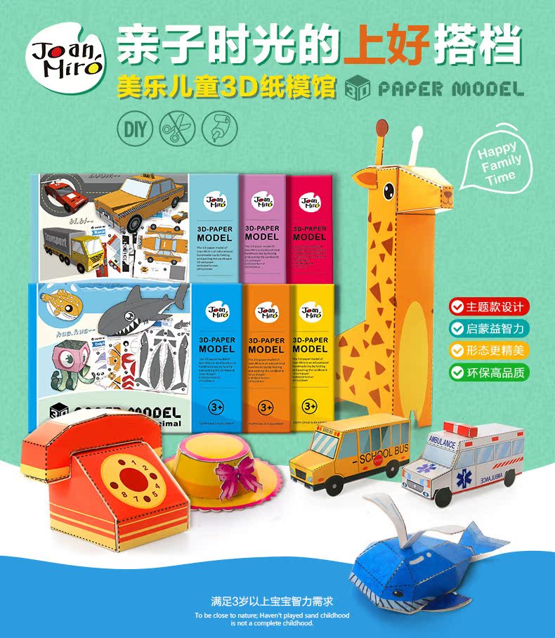 Meile children's three-dimensional origami book handmade materials DIY kindergarten 3D paper-cut model animal car toy