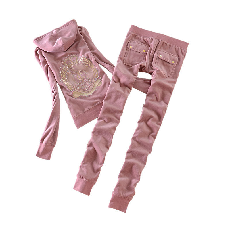 2022 autumn velvet sports suit women gold velvet casual suit with P pocket small feet pants large size sportswear
