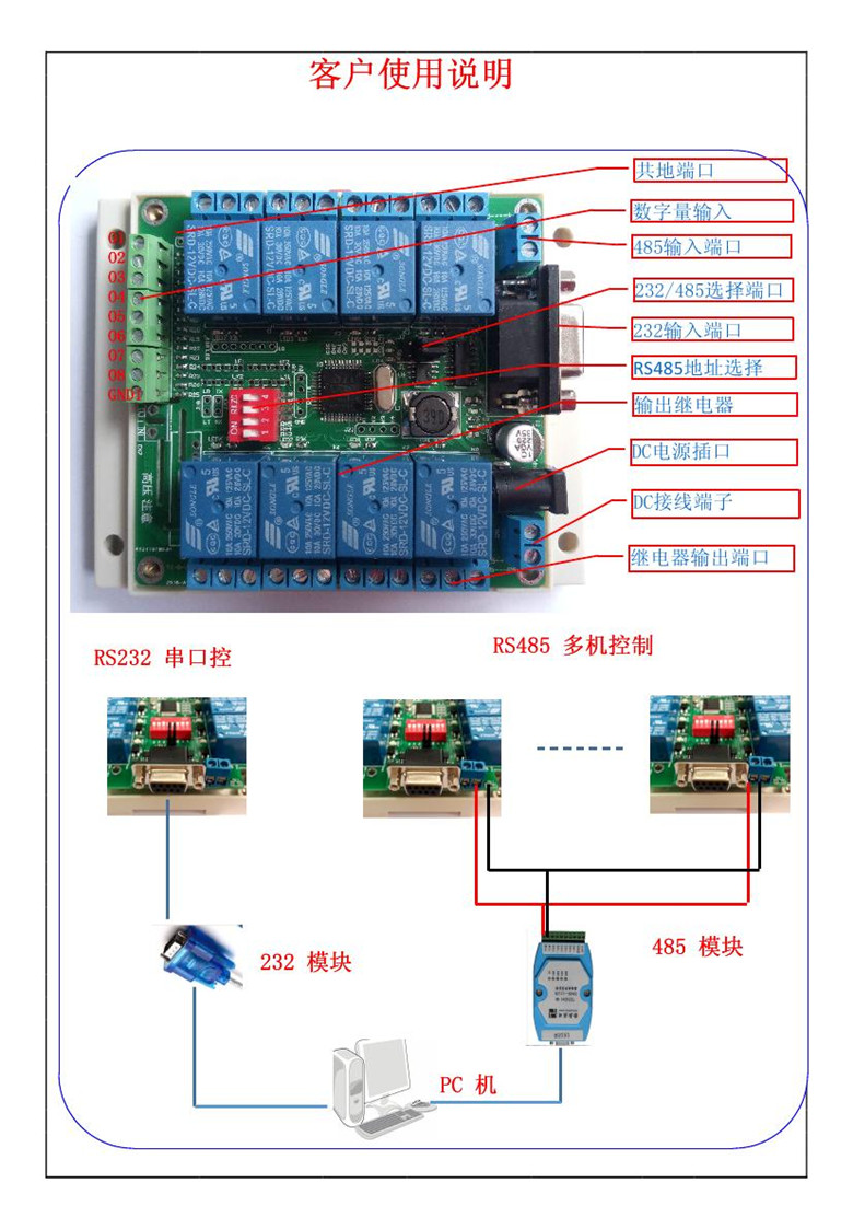 Host computer PC touch screen MODBUS protocol RS232 RS485 TTL control 8 relays