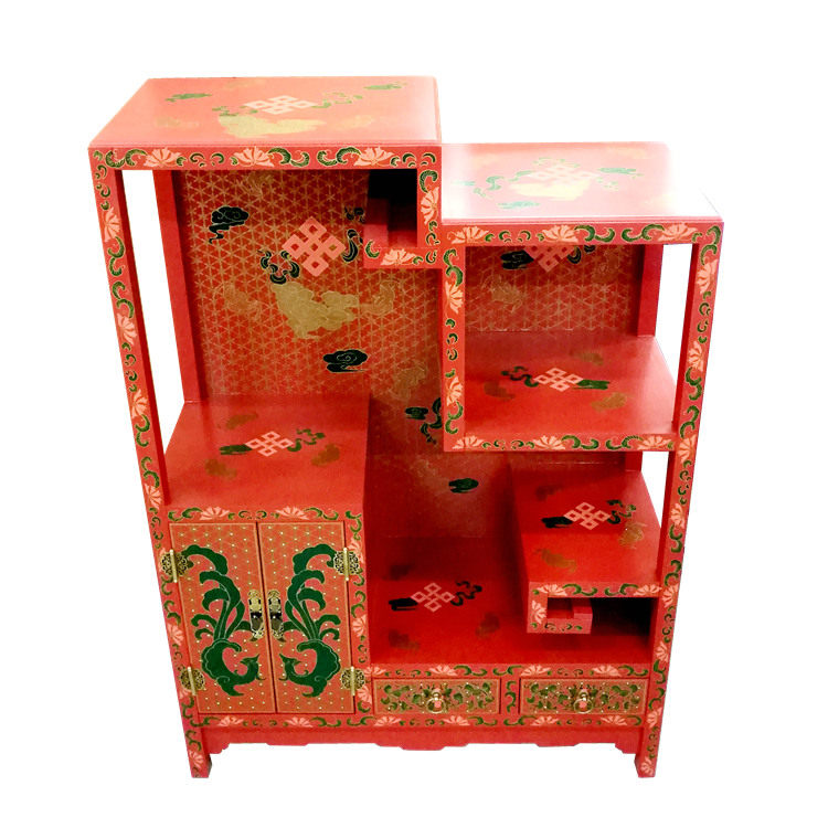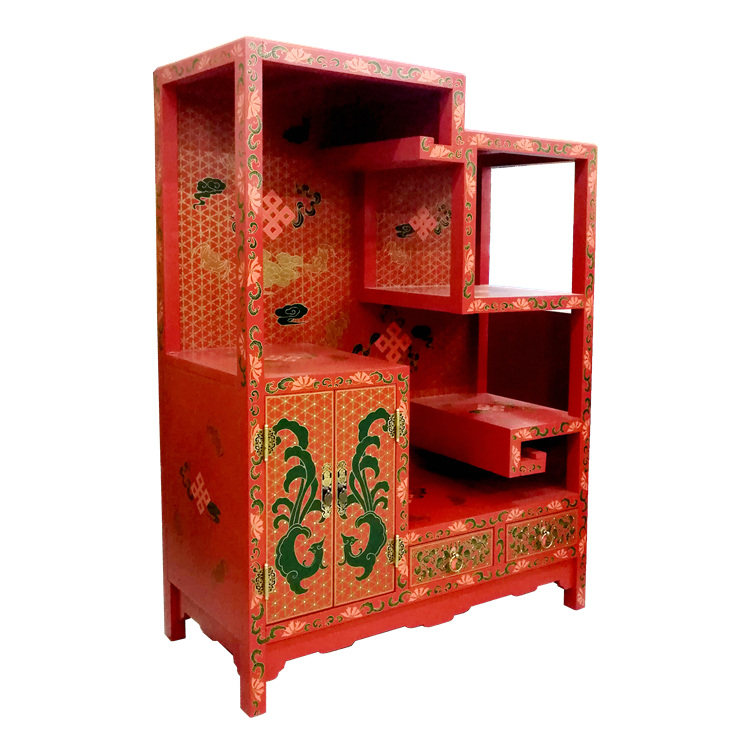 Red Ground Dill Painting Antique multi-treasure Gobo Ancient Shelf Custom Yangzhou lacquerware New Chinese Classical lacquer art home decoration