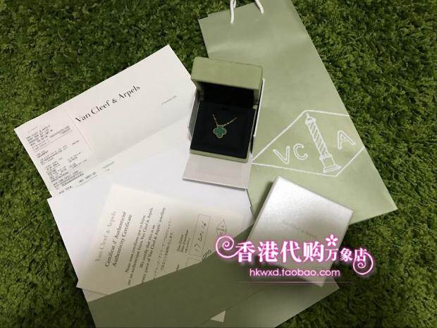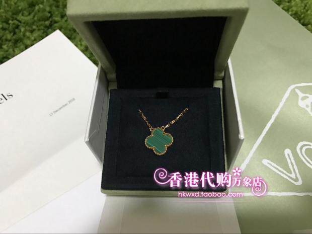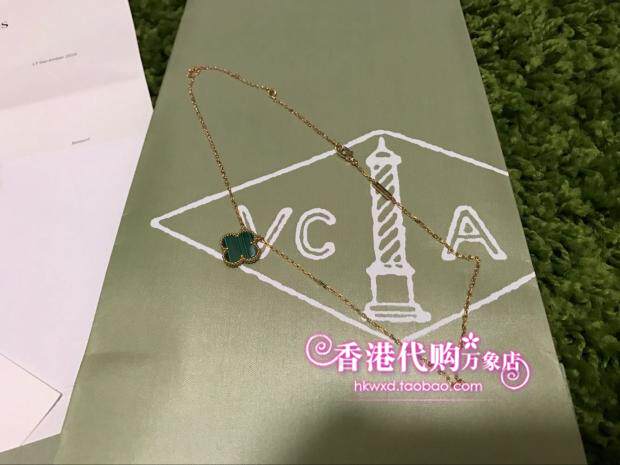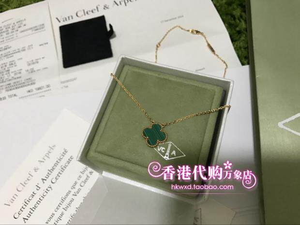 Hong Kong Special counters for live VCA Sanskrit Yabao?Four Leaf Grass 18K Gold Green Peacock Stone Necklace