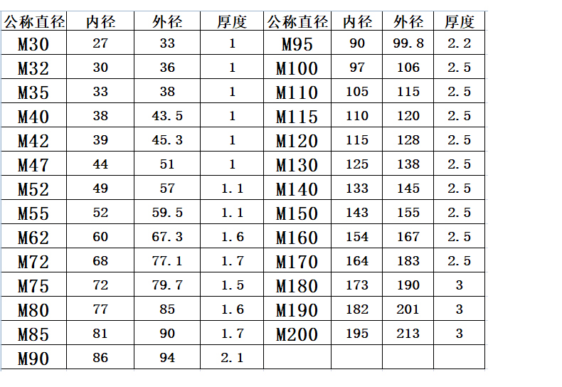 M30M32M35M40M42M47M52M55M62M72M75M80M85M90M95M100M110M120M13