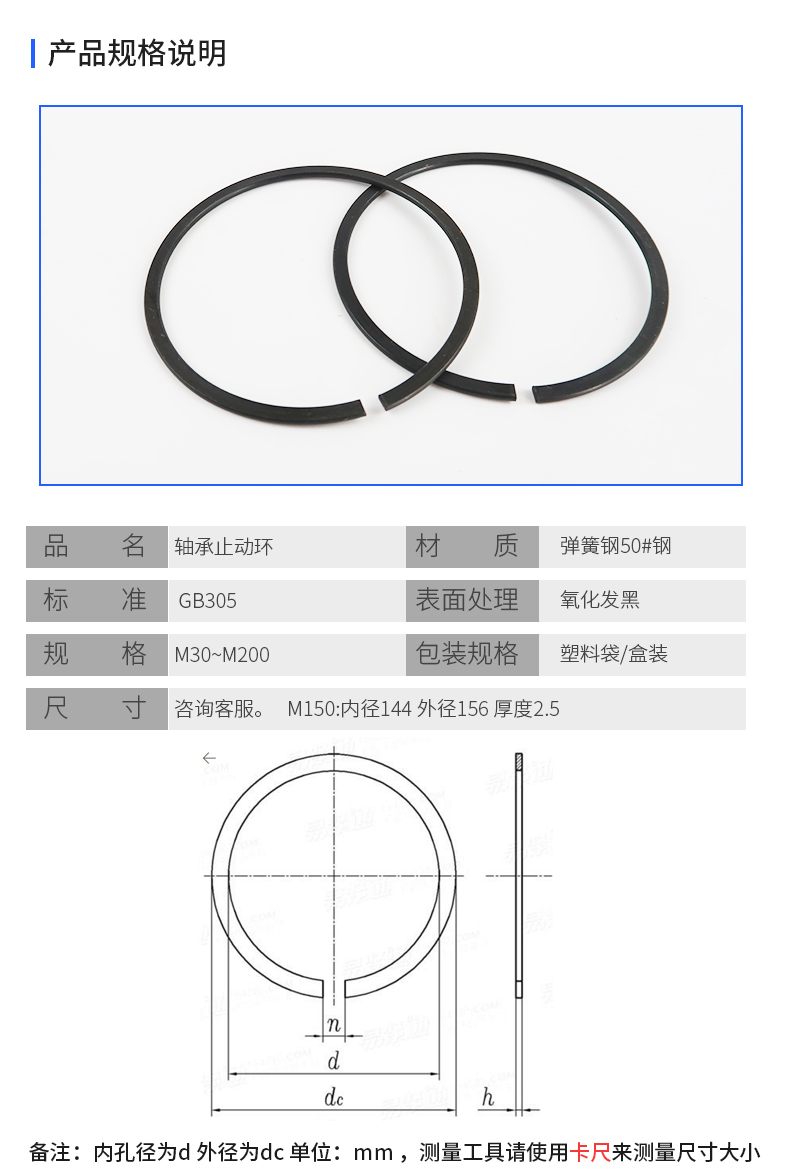 GB305 Rolling bearing with stop ring shaft card type C buckle ring flat ring steel wire retainer M30~M85