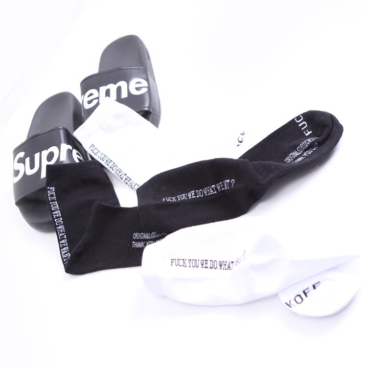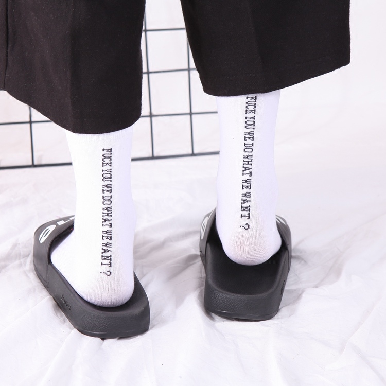 South Korea ulzzang Harajuku port style simple letters tide brand solid color medium tube cotton socks men's and women's versatile long socks