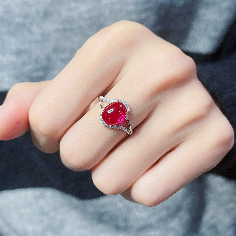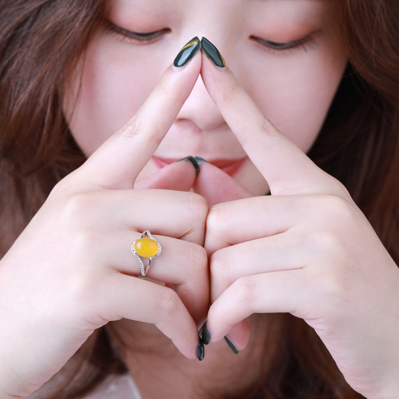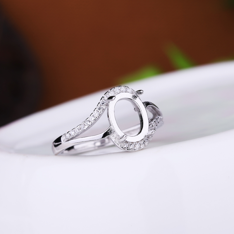 S925 Pure Silver Ring Hollow girl Diy inlaid honey wax green pine stone Withdrawal Alive 6 * 8 5 * 7 7 * 9 8 * 10