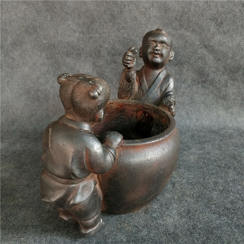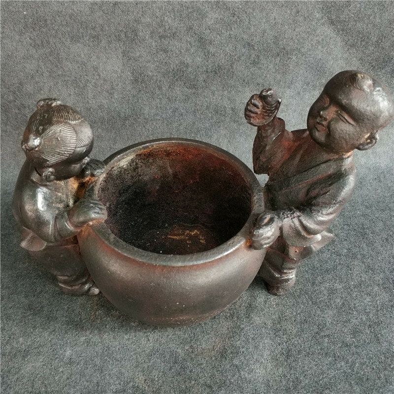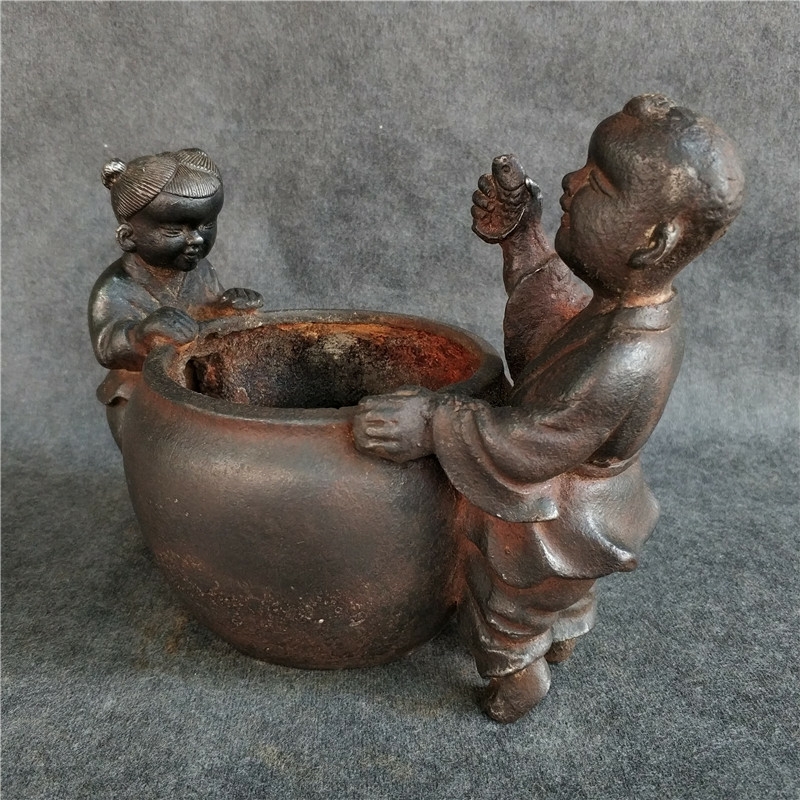 Old ironware Iron boy holding cylinder Iron pen washing antique miscellaneous collection of old objects Fine-shaped products are good