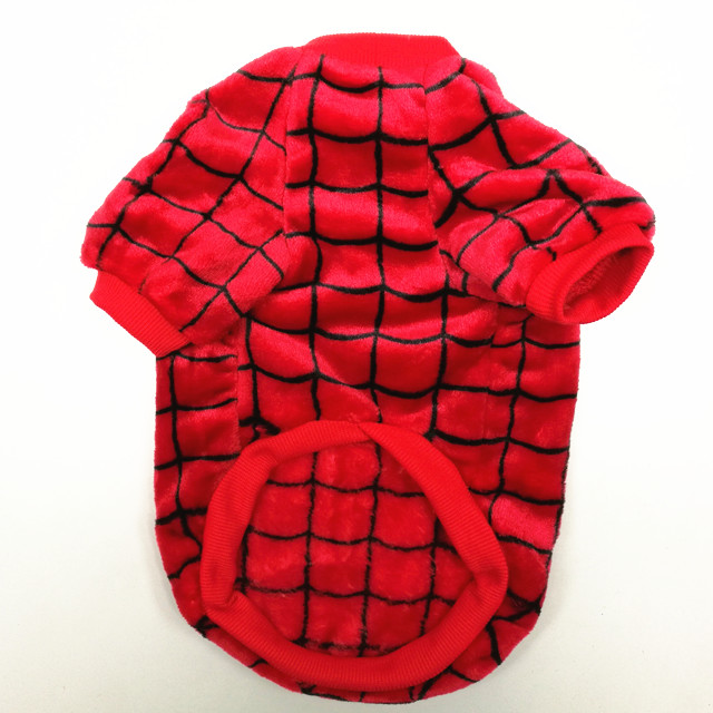 Pet Dog Clothes Plush Cobweb Pattern Red Spiderman Autumn and Winter Teddy Chihuahua