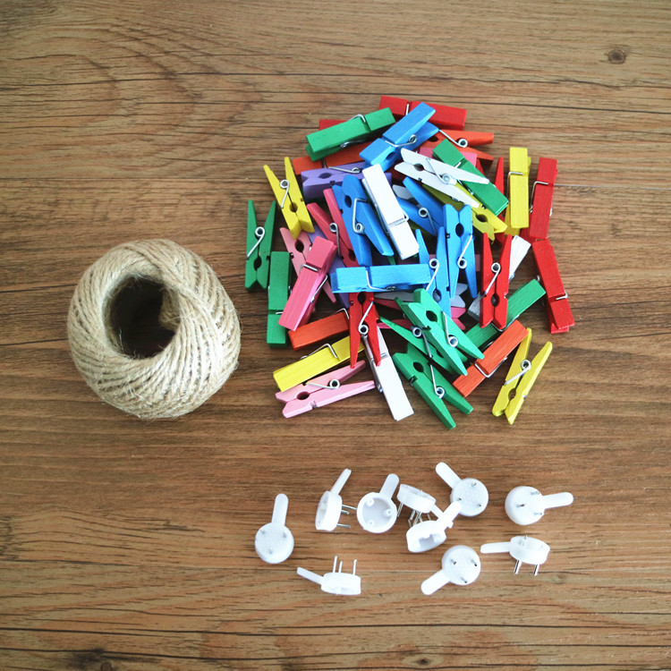 Creative photo clip color small wooden clip photo wall wooden clip hemp rope set diy photo clip