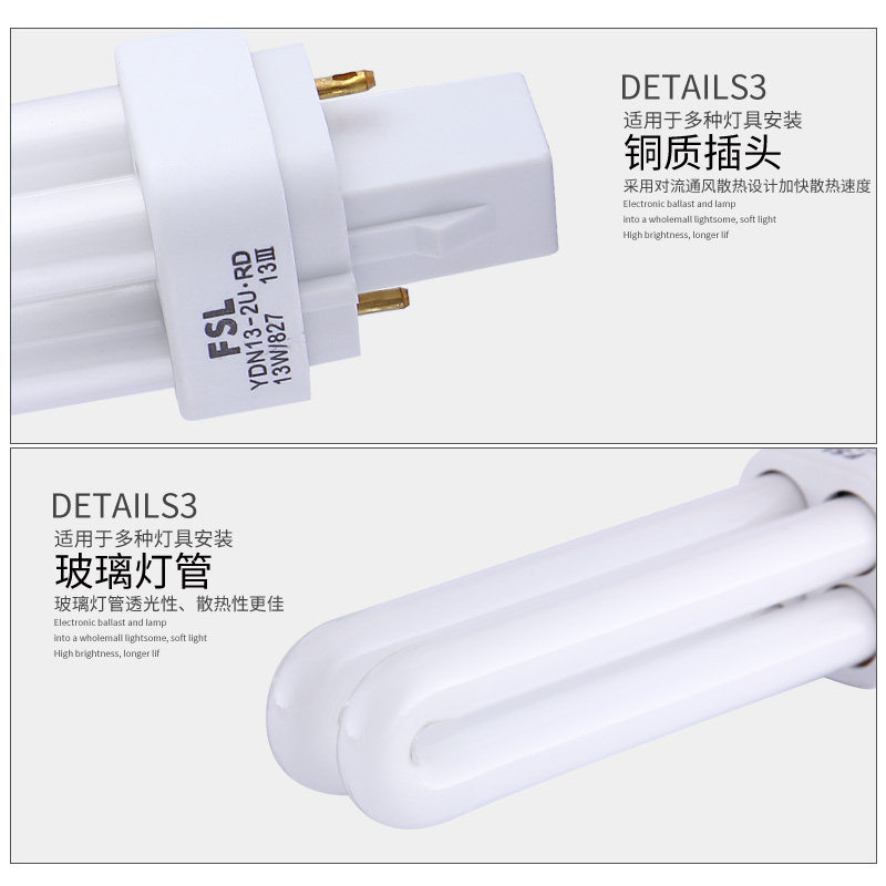 Foshan lighting plug-in energy-saving bulb 2-needle downlight plug-in fluorescent lamp 2U type plug-in tube 9W13W lamp