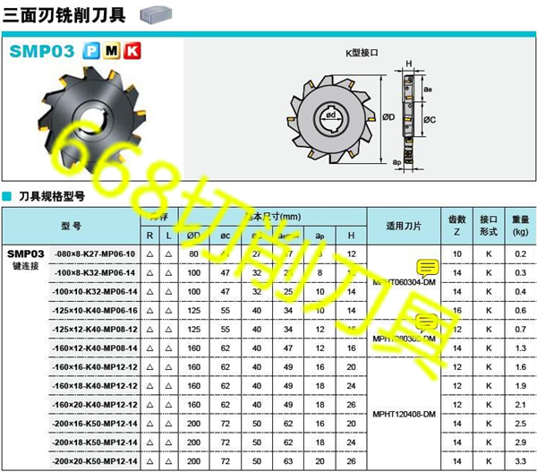 Zhuzhou three-sided blade milling cutter disc SMP03-080 * 8-K27-MP06-10 -A22-MP06-10