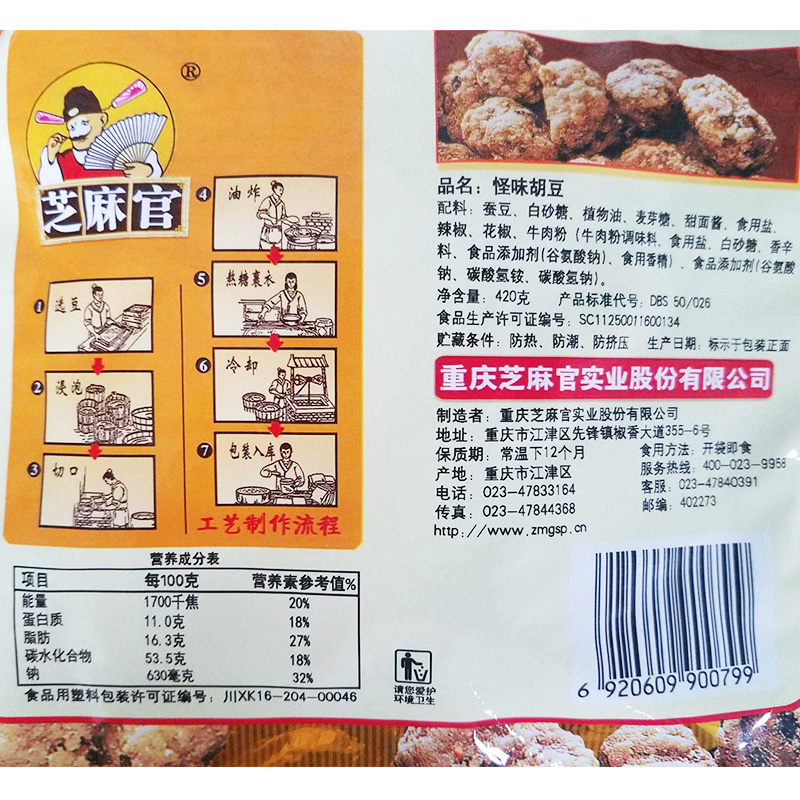 Sesame official weird flavor hu bean 420gx6 Chongqing specialty snack snack leisure orchid bean gift gift new year gift package