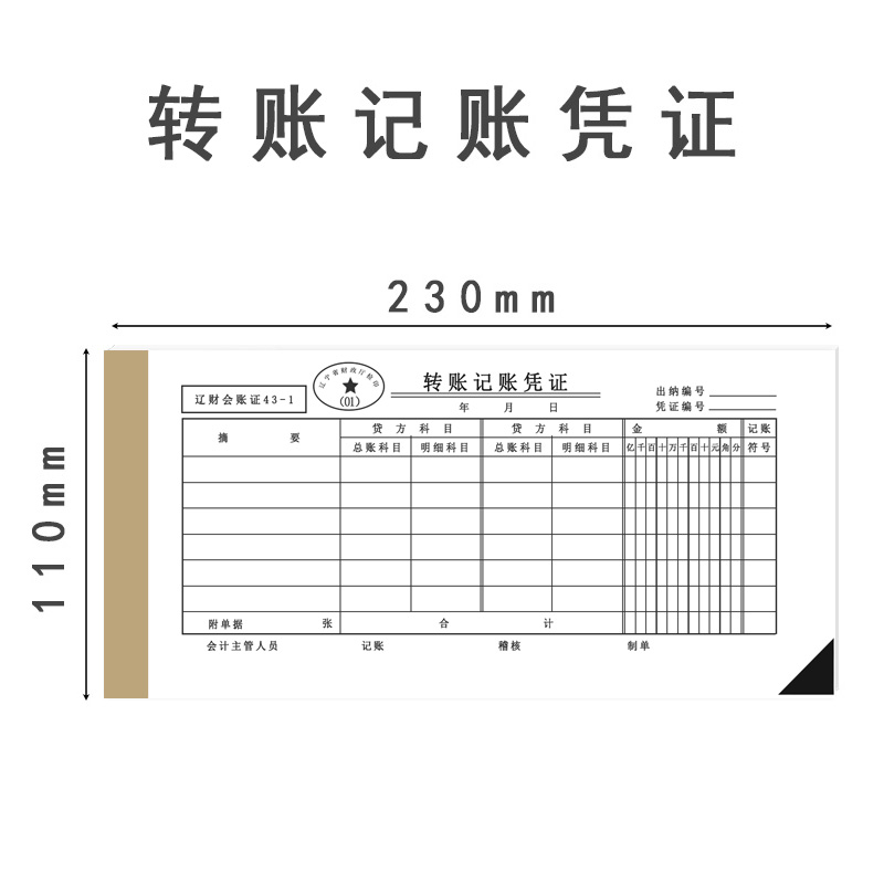Liao Cai accounting voucher General accounting transfer voucher No. 43-1 Reimbursement accounting voucher paper 230*110