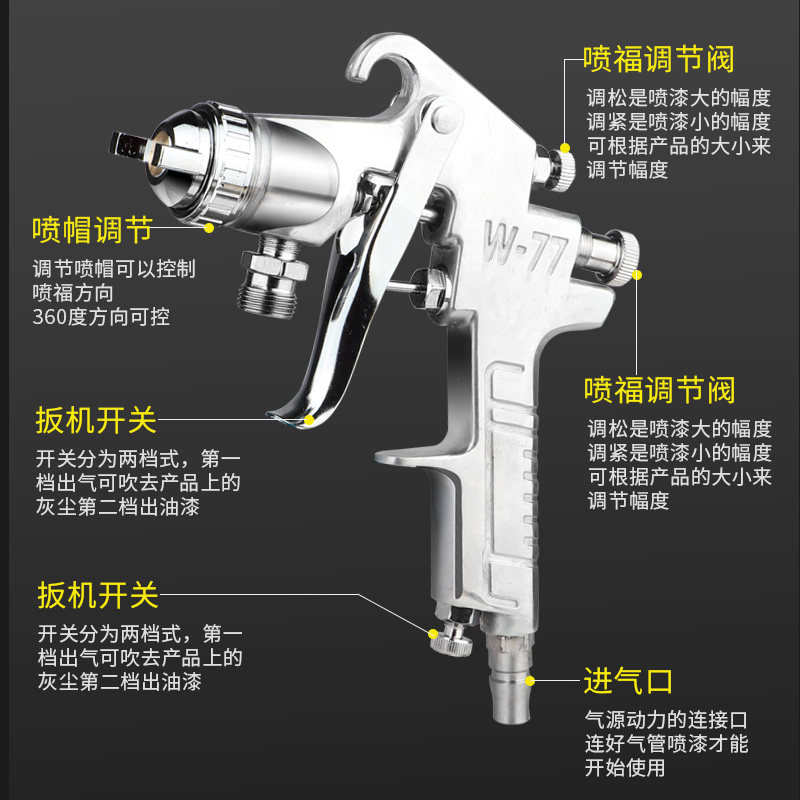 Pneumatic spray gun paint spray gun upper pot lower pot high atomization large flow spray gun W71S-W75G-W77G