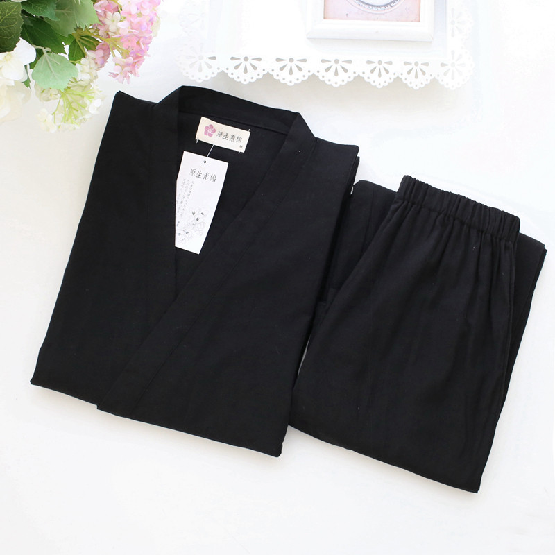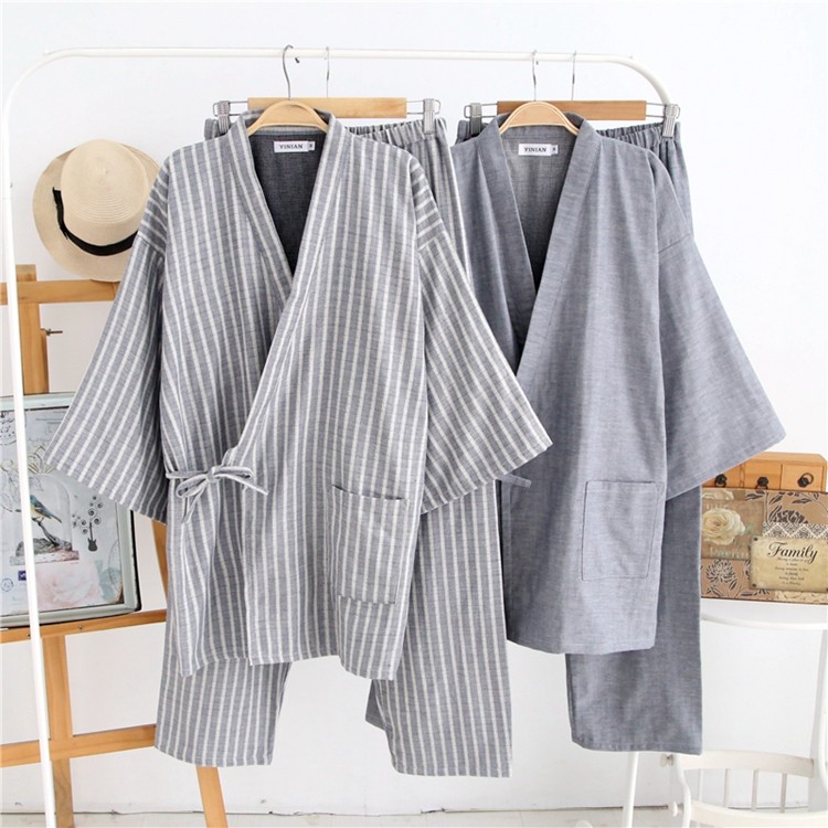 Spring and autumn Japanese kimono men's cotton pajamas loose large size cardigan home service and style service service Jinping