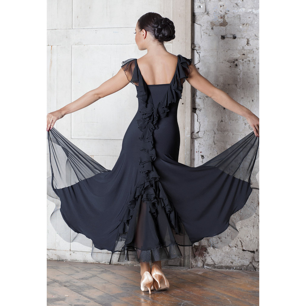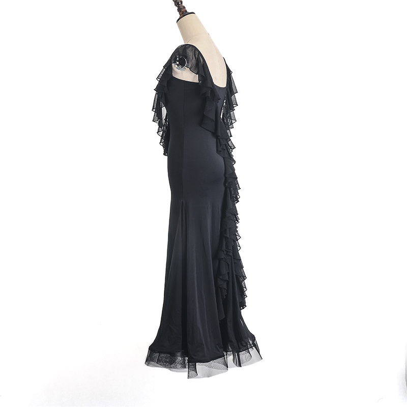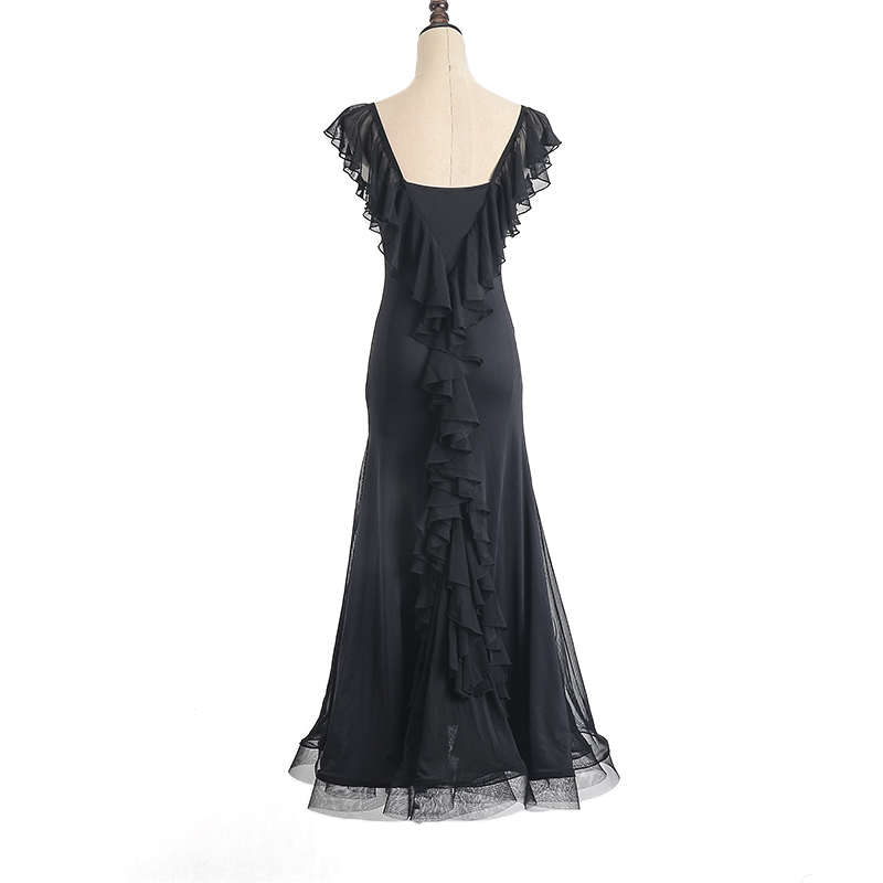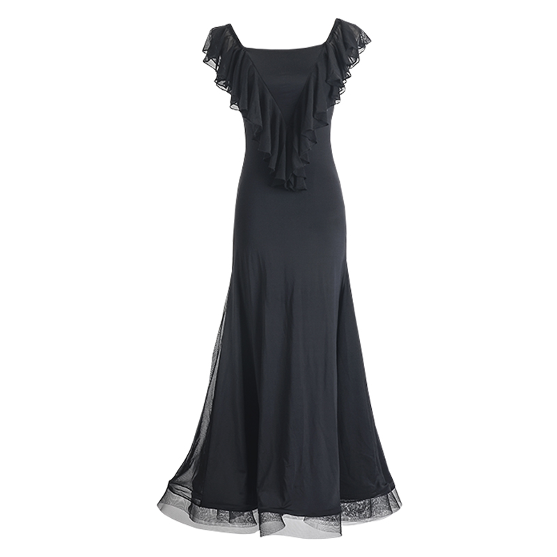Black Pool New Sleeveless Dorsal Lotus Leaf Lace Big Pendulum Fish Bone Skirt Morden Dance Practice Performance Foreign Dress 7004 Spot