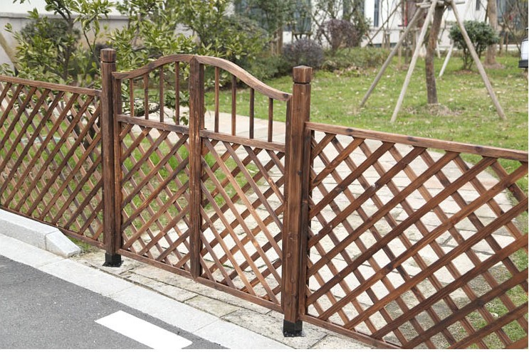Carbonized wood fence fence gate outdoor courtyard fence with door wooden gate grille gate climbing pergola garden gate