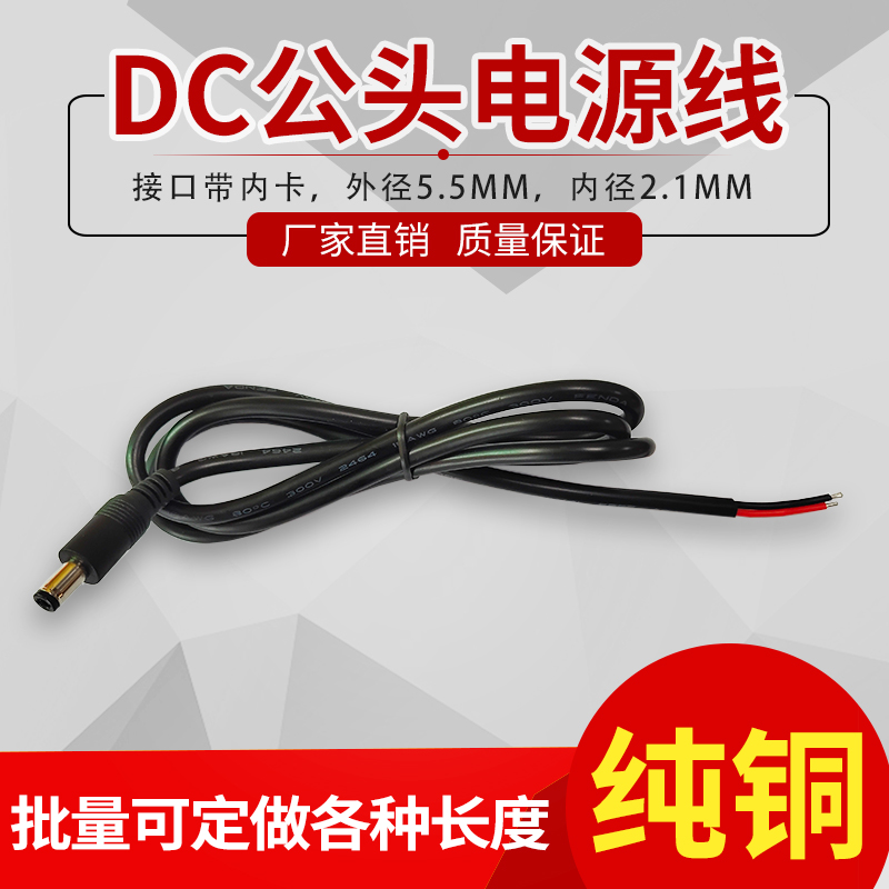12-24V DC 0 75 square DC5 5*2 5MM single male round head power cord notebook power cord 0 5 meters