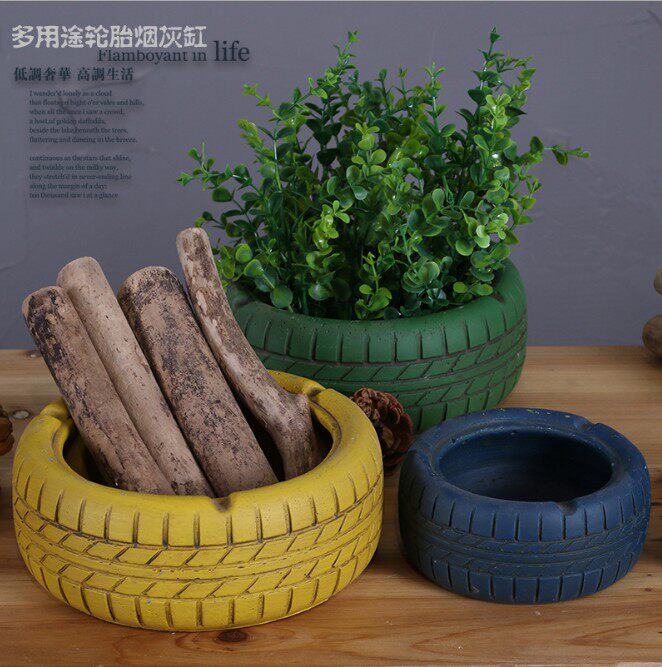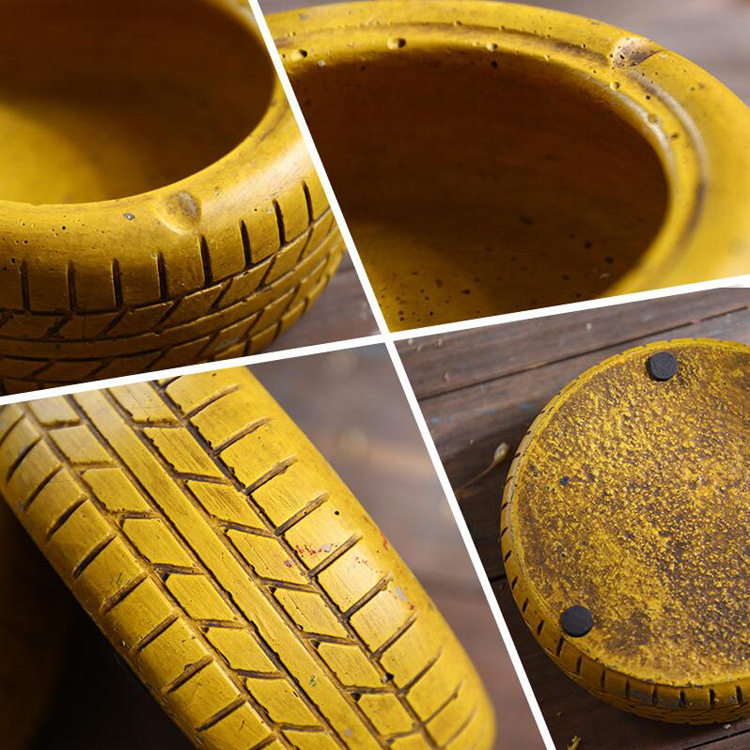 Retro cement tire ashtray decoration succulent flower pot storage desktop decoration crafts home decoration