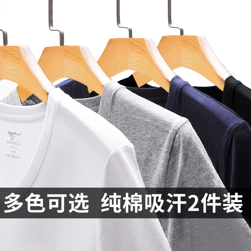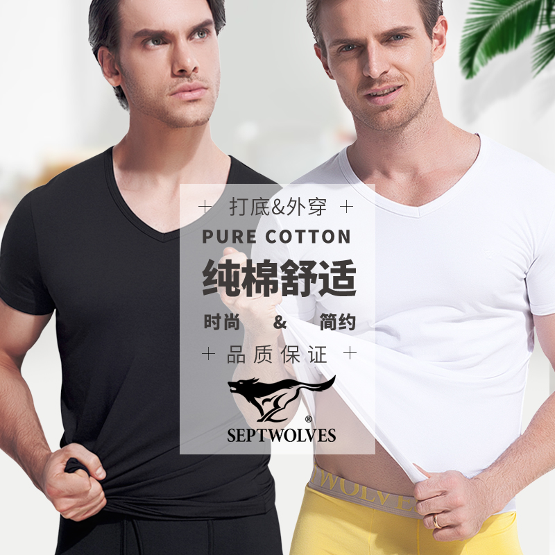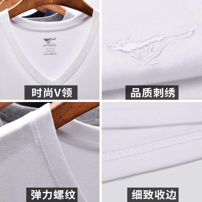 Seven Wolf Pure Cotton V-collar Short Sleeve Men Summer Thin T-shirt All-Cotton Sweater Underwear Vest