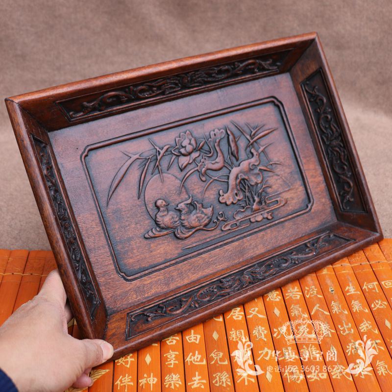 New Retro Wood Sculpture Craft Solid Wood Tea Tools Antique Related Profile Lotus Flower Mandarin Tea Disk