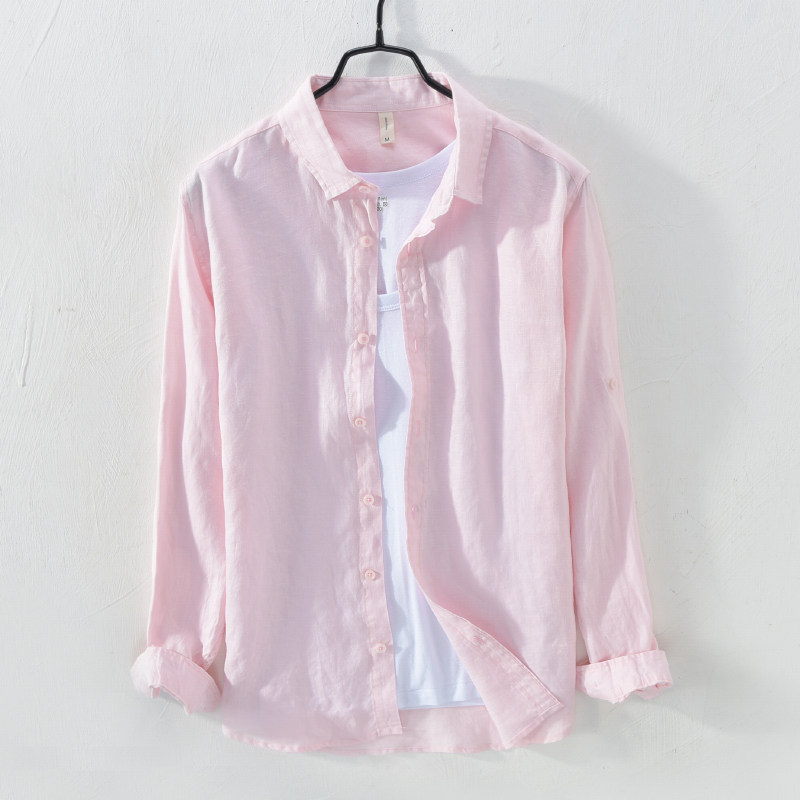 Beach Breathable White Long Sleeve Linen Shirt Men Casual Thin style Slim Fit Loose Sunscreen Cotton Linen Shirt