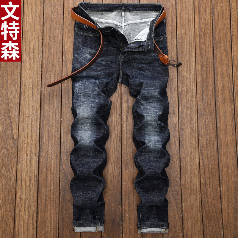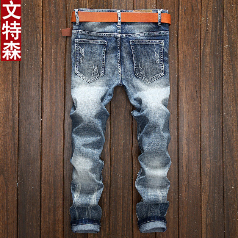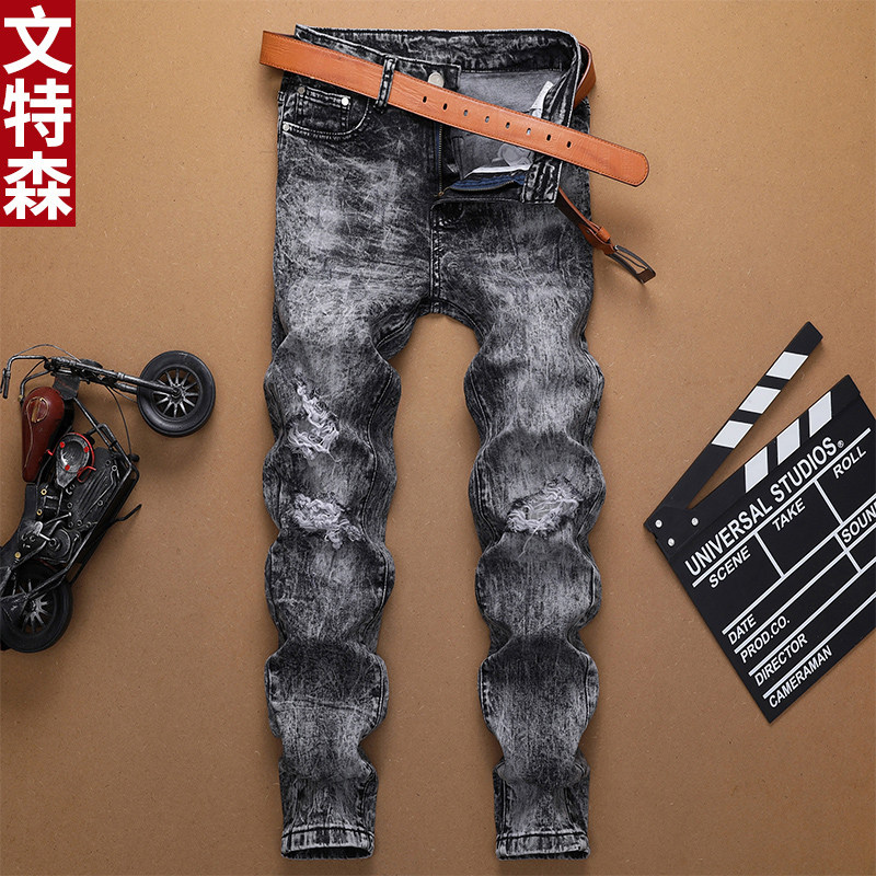 Winterson Spring and Autumn Men's Korean-Style Jeans Men's Trendy Hole Scratch Stretch Slim Straight Tide Beggar Pants