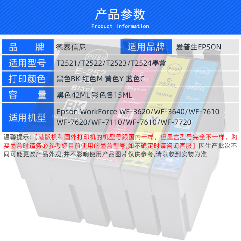 DAT for Epson T252XL T2521 black color cartridge Epson WorkForce WF-7610 WF7620 cartridge WF-3