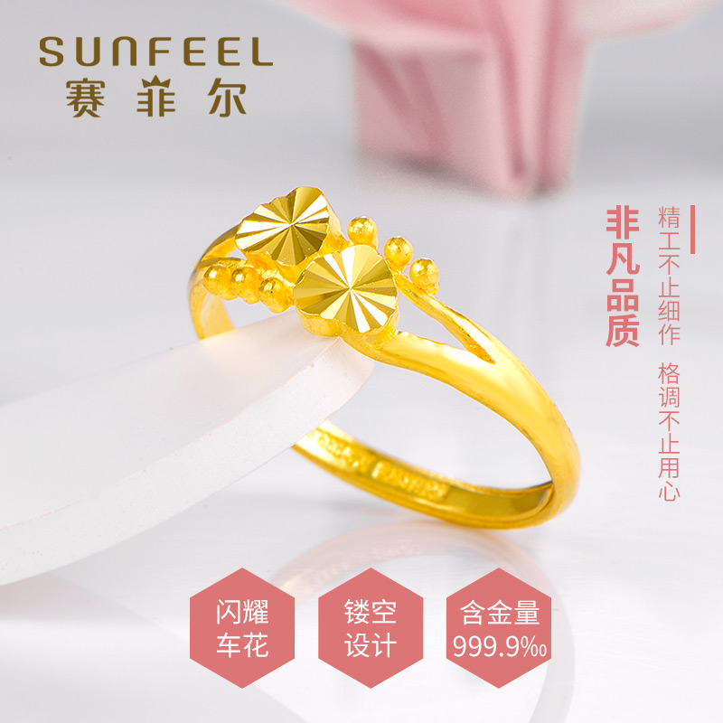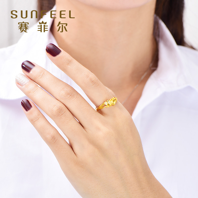 Safir gold ring pure gold 999 9 live mouth female ring to send girlfriend hand jewelry love simple fashion gift