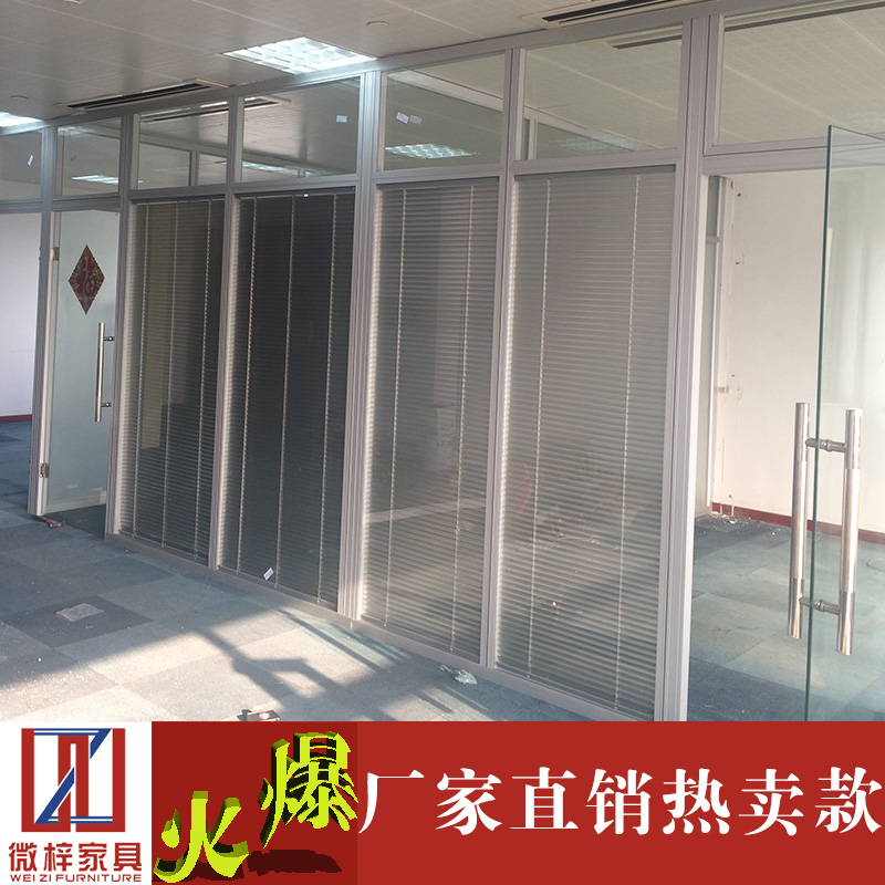 Shanghai aluminum alloy 80 high partition screen with shutter compartment wall office tempered glass partition wall