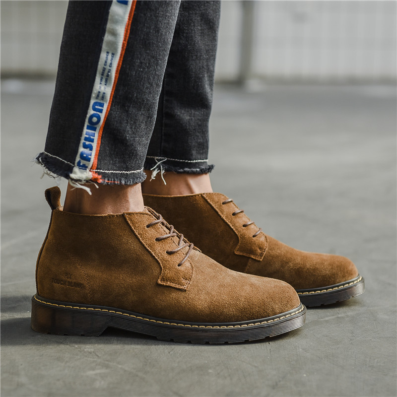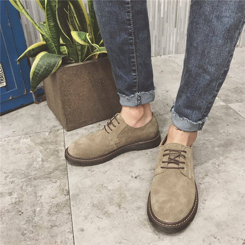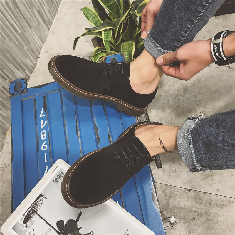 Men's Small Leather Shoes Fashion Lace Casual Shoes Retro Art Frosted Shoes Damp Men's Day Department Low Bunch Shoes Martin Shoe Men