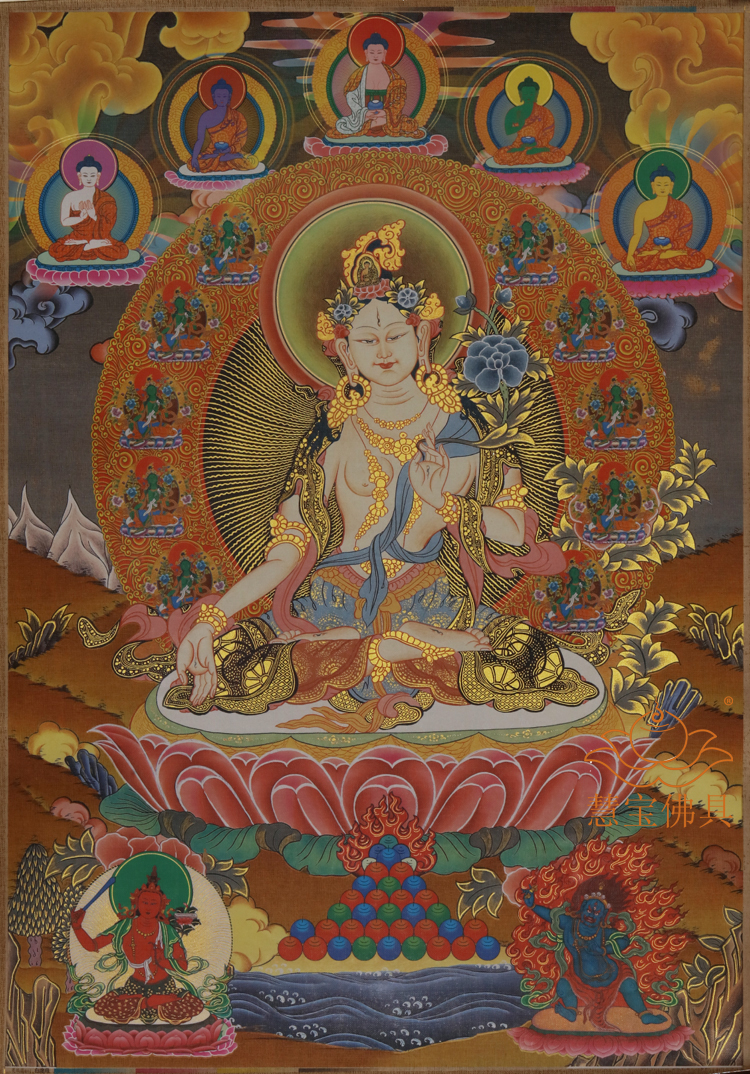 White-degree mother boutique Donka Tibet hang painting Pride handmade fine framed printed gold thread Tangka statue