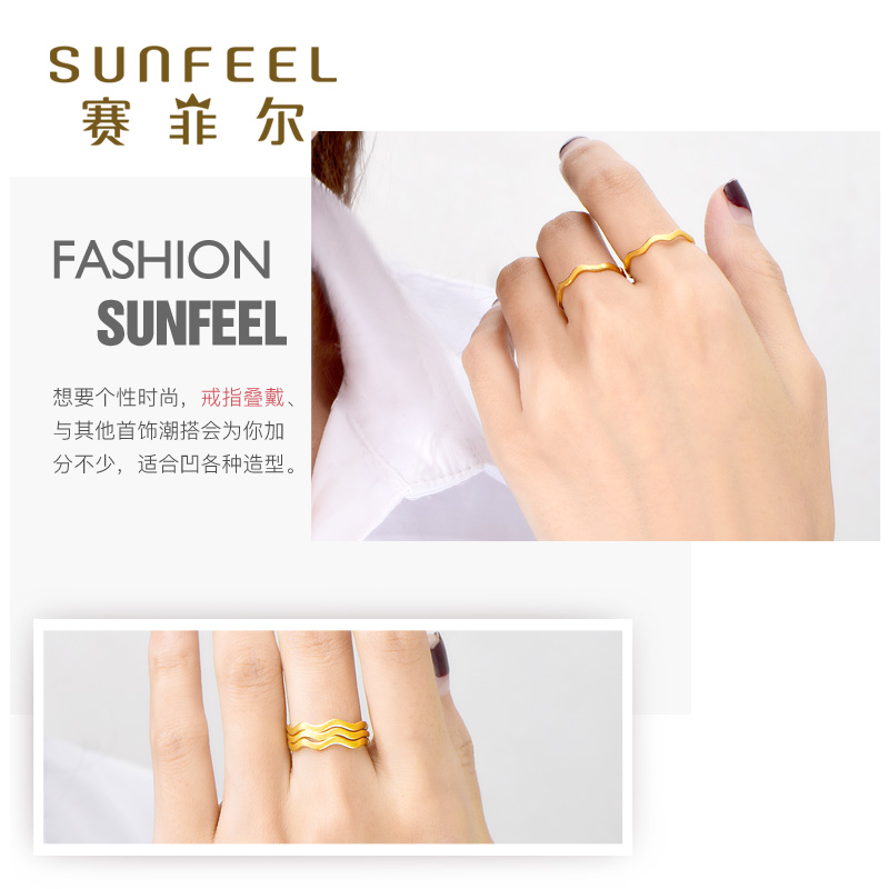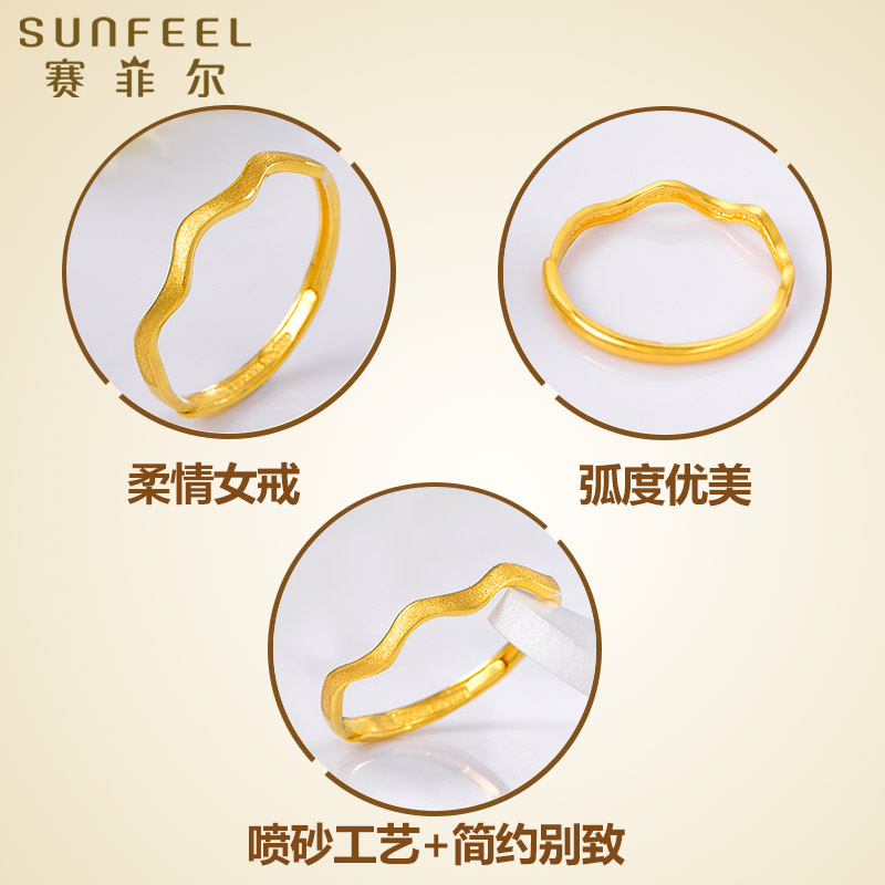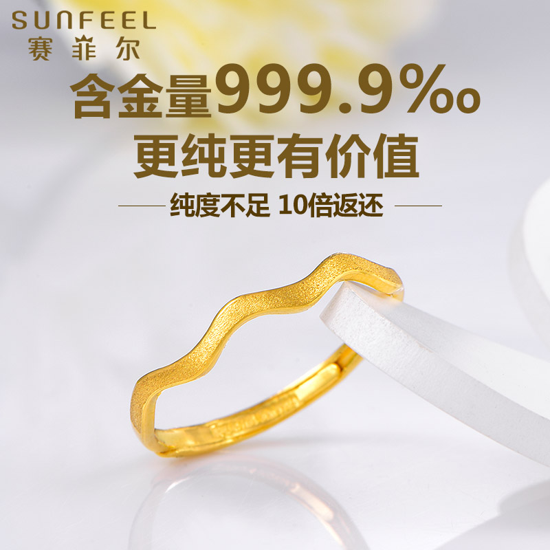 Safir Wave Gold Ring Gold Ring Women's Live Mouth Gold 999 9 Fashion Wild Wave Women's Ring