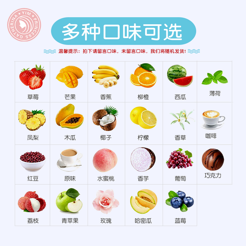 Coffee, chocolate, coconut, sweet taro, original rose, red bean, strawberry, blueberry, grape, banana, litchi, lemon, vanilla, pineapple, watermelon, peach, mango, orange, green apple