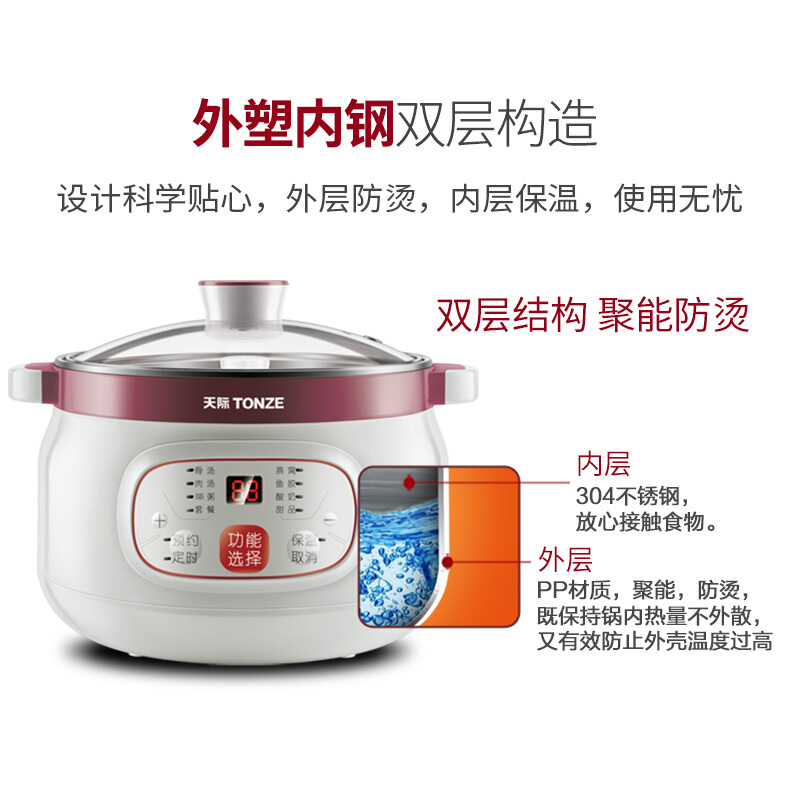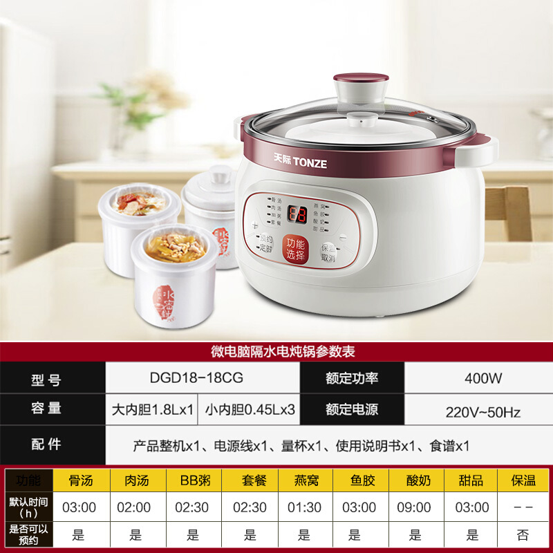 Sky DGD18-18CG stainless steel stew stew stew stew stew pot household white porcelain soup cooking porridge pot 2-3 people