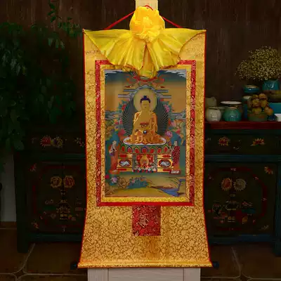 Tibet gold-plated printing 61 * 37cm Tibetan Thangka painting Sakyamuni Buddha statue hanging painting