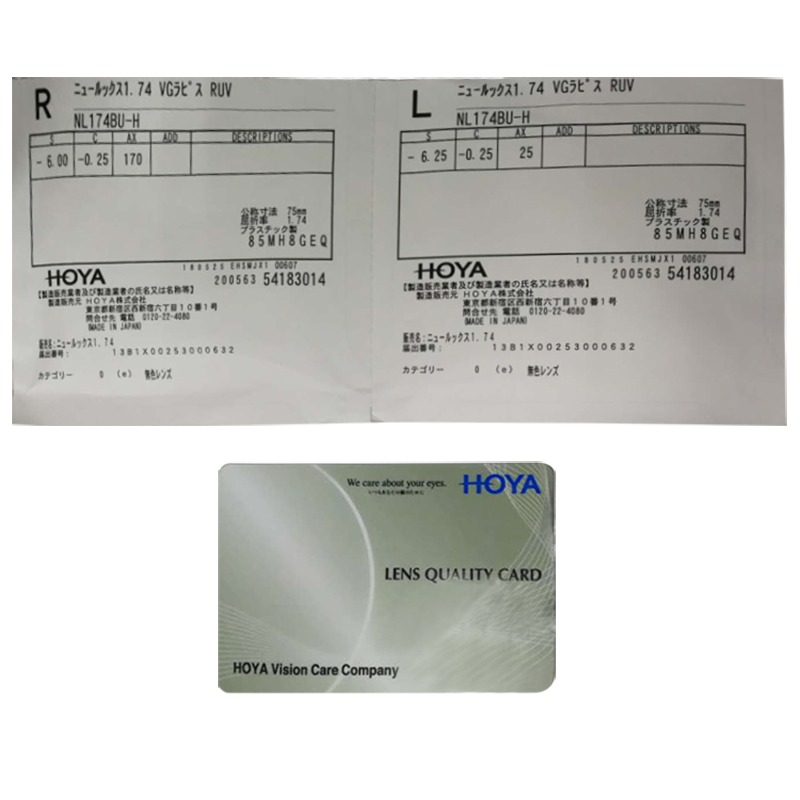 Japan Direct Mail HOYA NULUX EP 1.74 VG Double Non-Blue Light Resistant Myopia Glasses Lens Monolithic