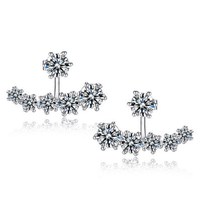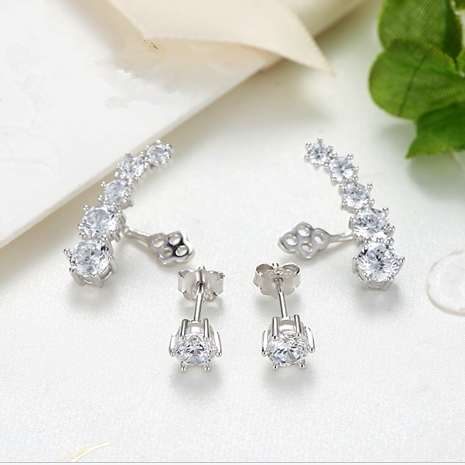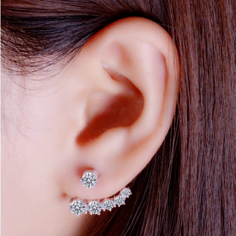 925 sterling silver dual-purpose zircon earrings full diamond back hanging earrings super flash Korean version Korean jewelry hypoallergenic earrings