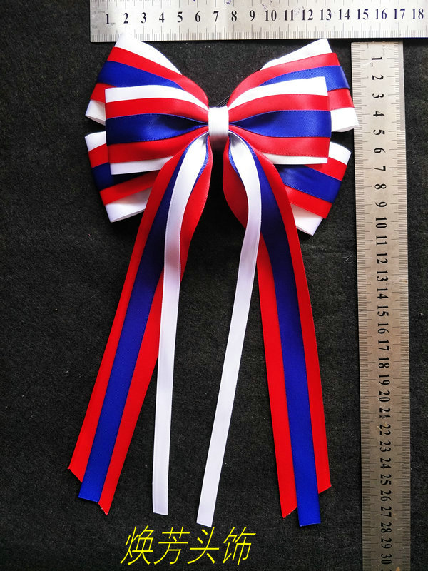 Flower ball cheerleading gymnastics dance competition bow hair ornament hair band hairpin hair clip hair card hair head ornament red white blue