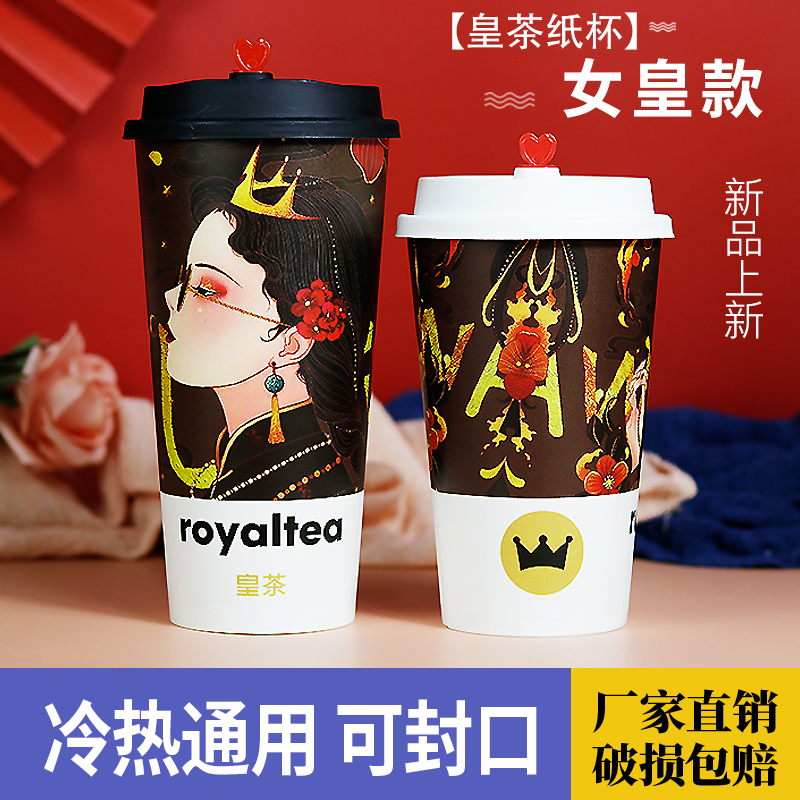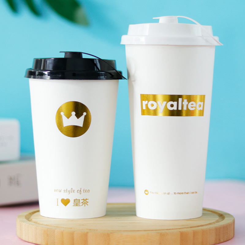 Royal tea cold and hot drink cup 90 caliber disposable paper cup 500ml700ml milk tea cup with cover custom logo