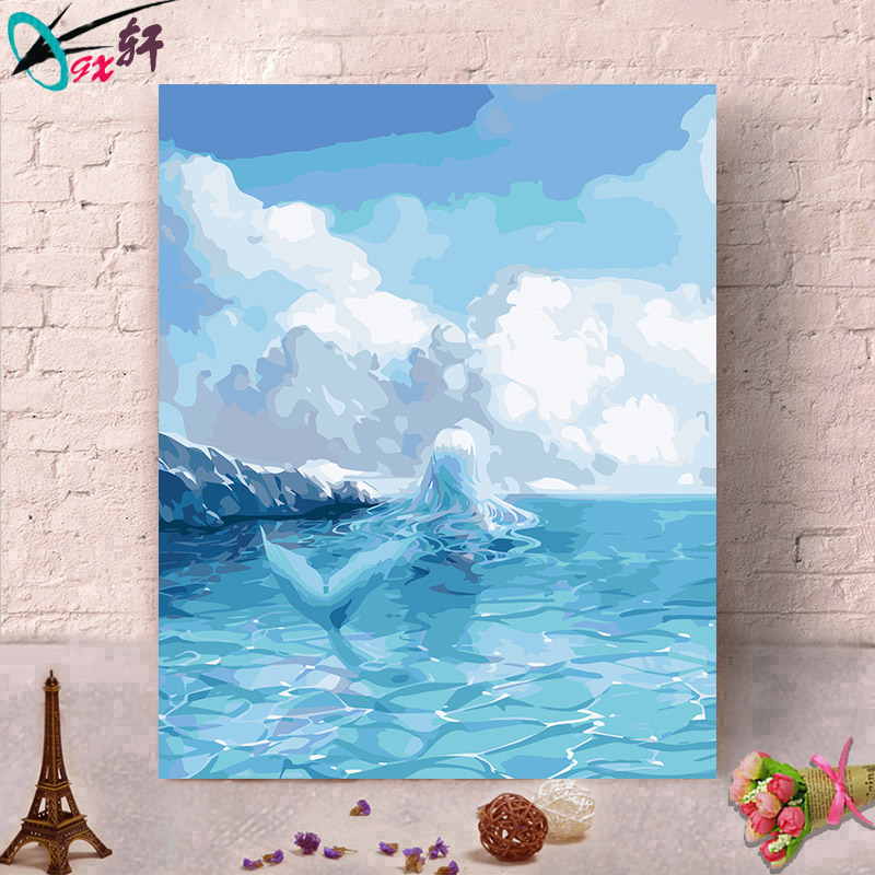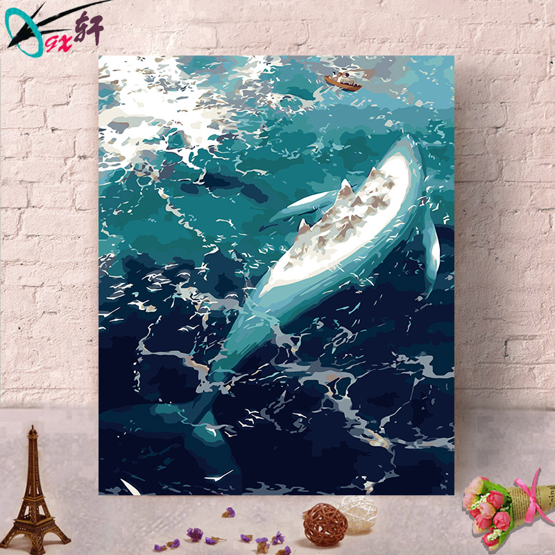 Digital oil painting diy cartoon Cartoon Filling painted oil color painting Living room Bedroom Book Room decoration painting Big Fish Haitang