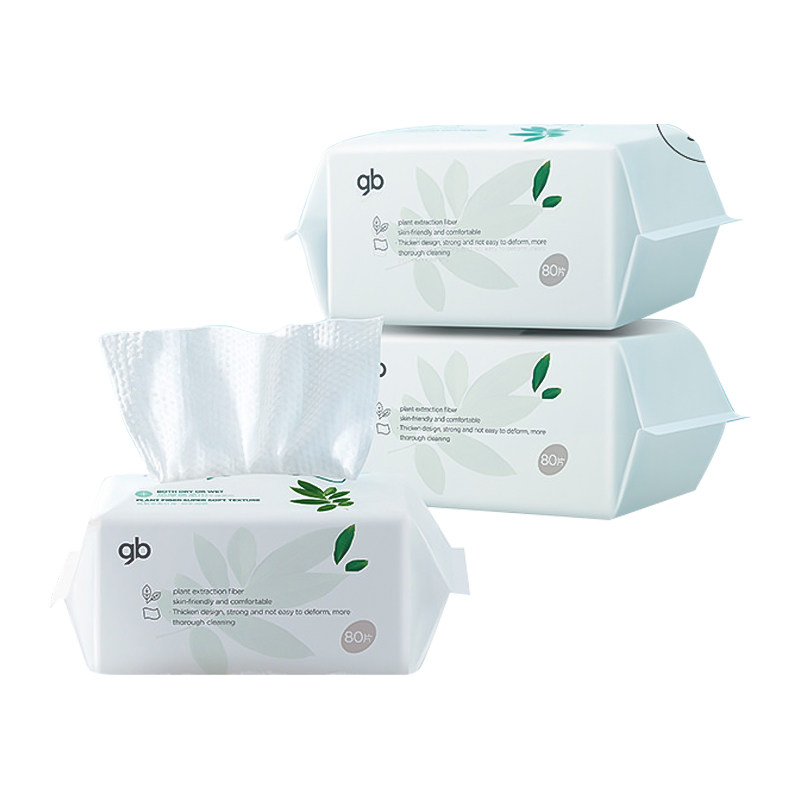 (gb good child baby cotton soft towel 80 draw 12 packs) newborn treasure dry and wet cotton soft paper towel thickened