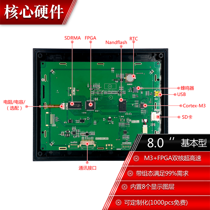 8 inch serial port screen 232 with housing touch screen human-machine interface with configuration SD RTC 5-26V