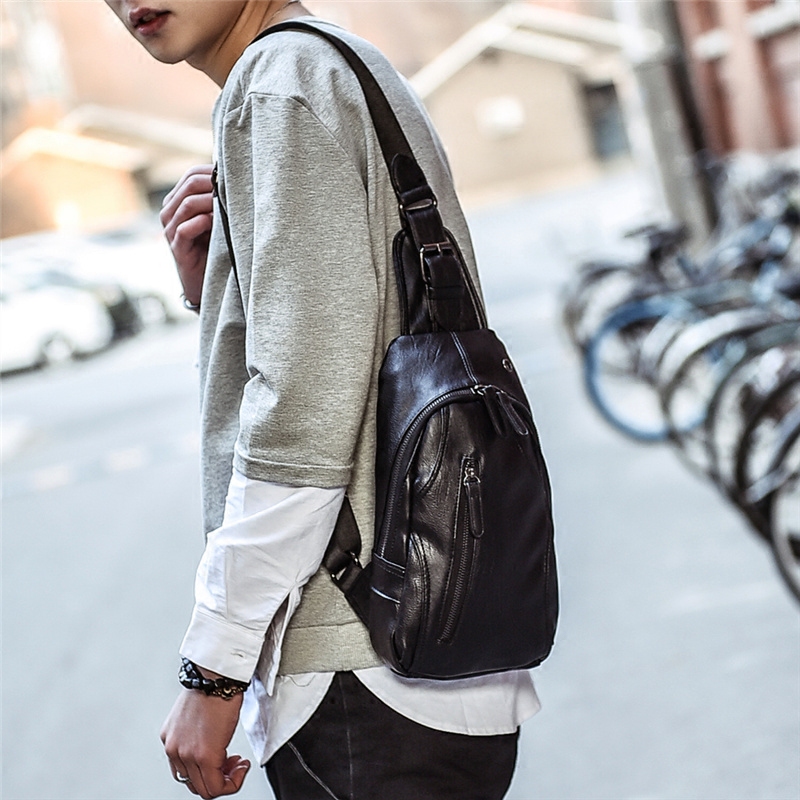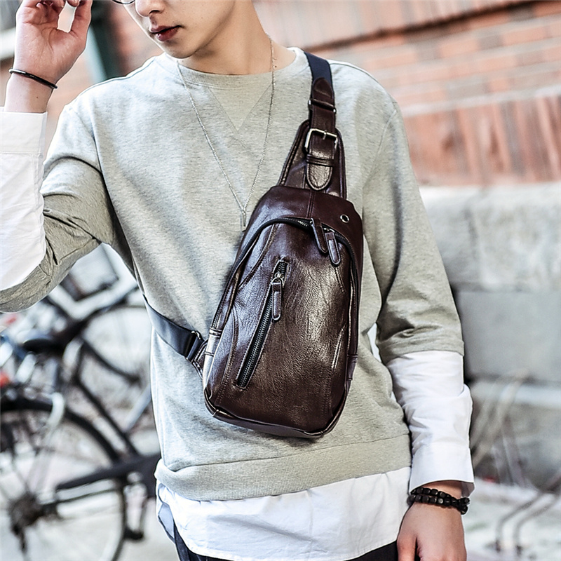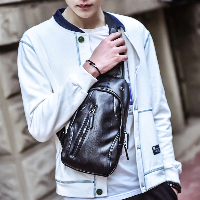 New Leisure Chest Bag Men Han Edition Pocket Leather Bag Men's Slanted Satchel Bag Single Shoulder Bag Sport Shoulder Bag Tide Bag