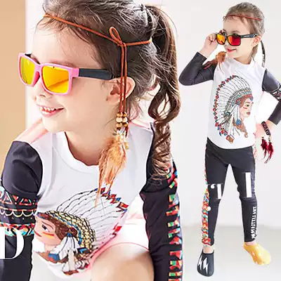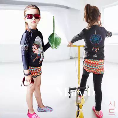 Children's swimsuit girl Zhongdong student two-piece long sleeve sunscreen quick-drying Korean diving suit baby swimsuit