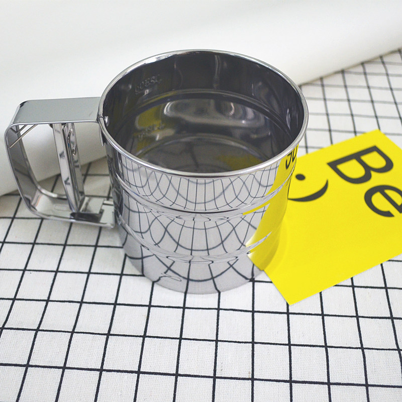 Stainless steel hand-held flour sieve household filter sieve sieve leaking mesh surface sieve leaking sieve baking cup sieve